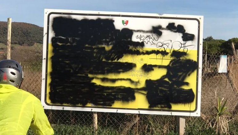 Durante la notte alcuni vandali hanno oscurato il “cartello della discordia” a Banzai.